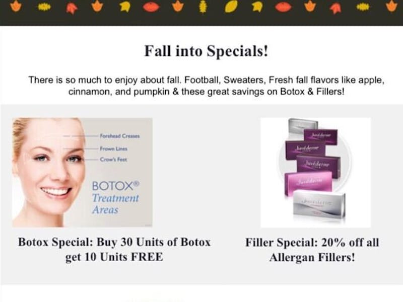 There is so much to enjoy about Fall. Sweaters, fresh fall flavors like apple, cinnamon, and pumpkin & these great savings on BOTOX® & Fillers!
